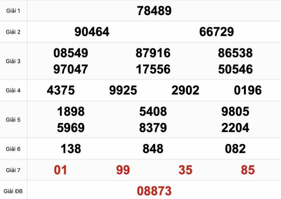 | Đầu đuôi giải đặc biệt: 87 |