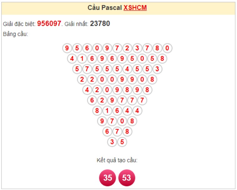 => Kết quả nhận được từ soi cầu Pascale là cặp lô thần tài: 20 - 02