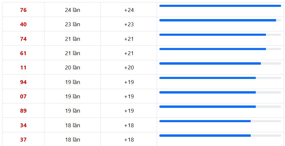 10 cặp số xuất hiện nhiều trong 30 lần quay XSMT