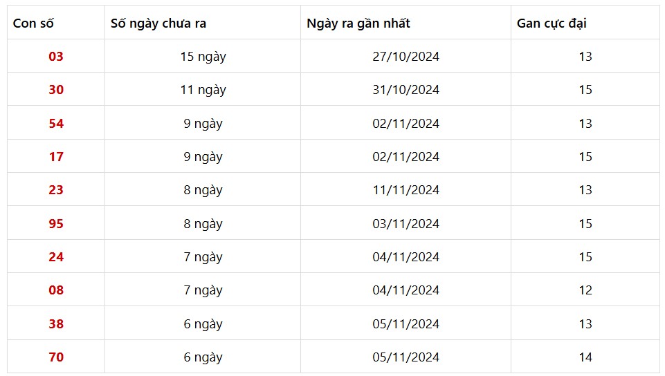 Việc xác định được chu kỳ, xu hướng nổ của các lô giúp người chơi dễ dàng lựa chọn số may mắn để xuống tiền vào ngày 12/11. Đồng thời bạn loại bỏ lô lâu chưa về để tiết kiệm chi phí. Tuy nhiên, cách này đòi hỏi anh em phải thật sự kiên nhẫn và có nguồn tài chính vững chắc.